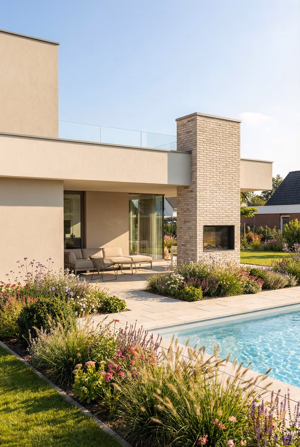 - Příjemné spojení s exteriérem: Krytá terasa nabízí možnosti relaxace i zábavy.