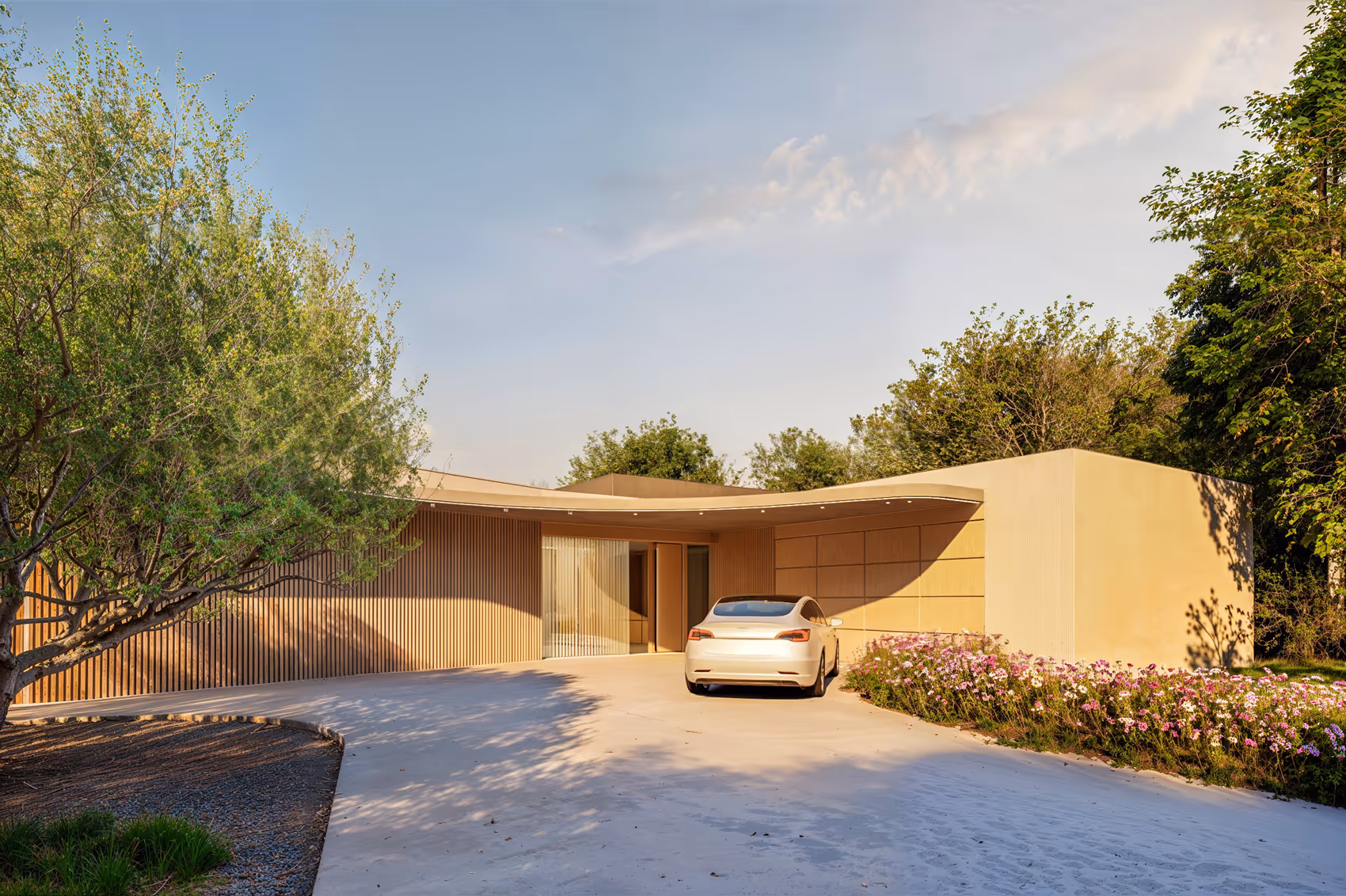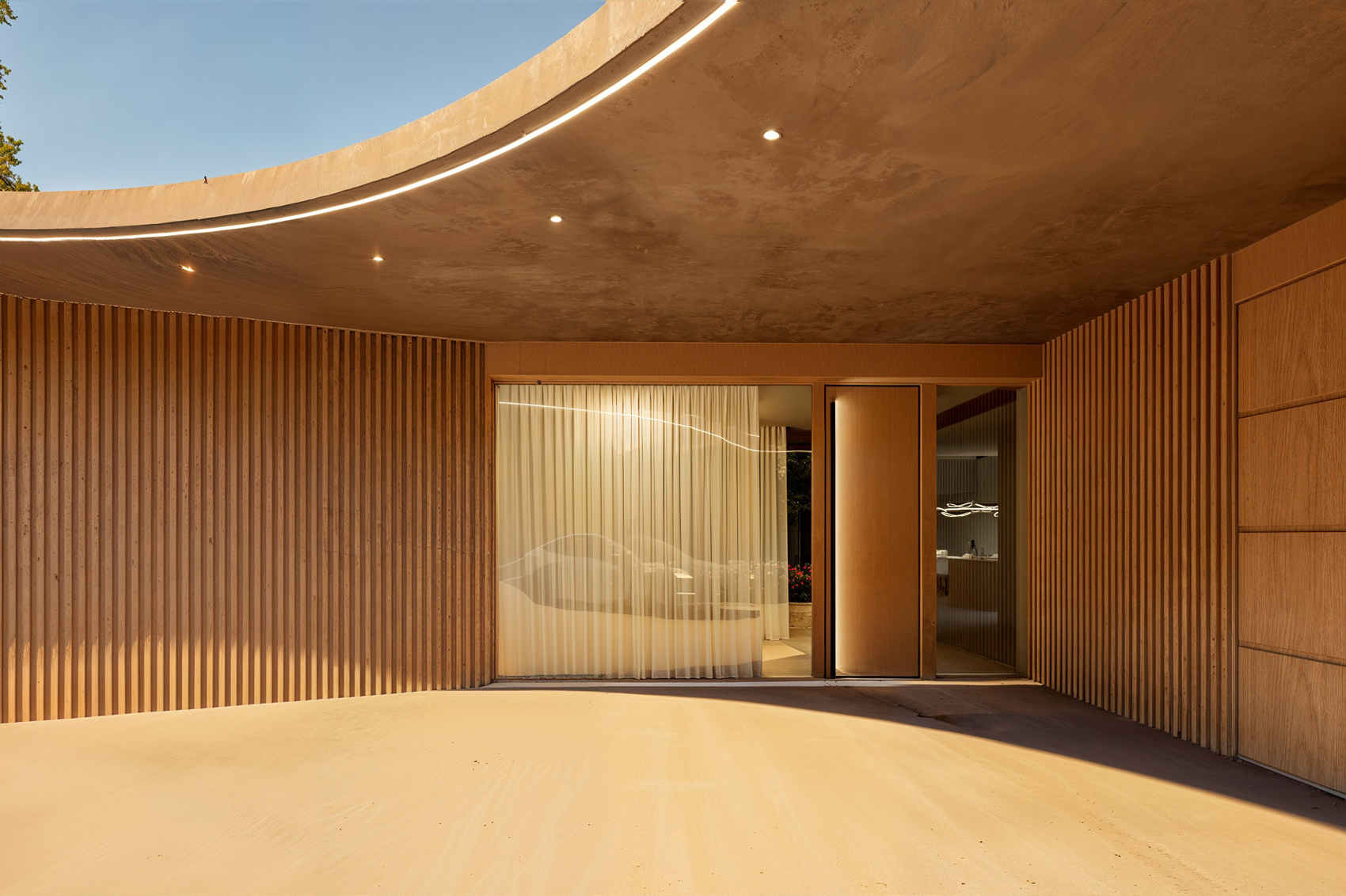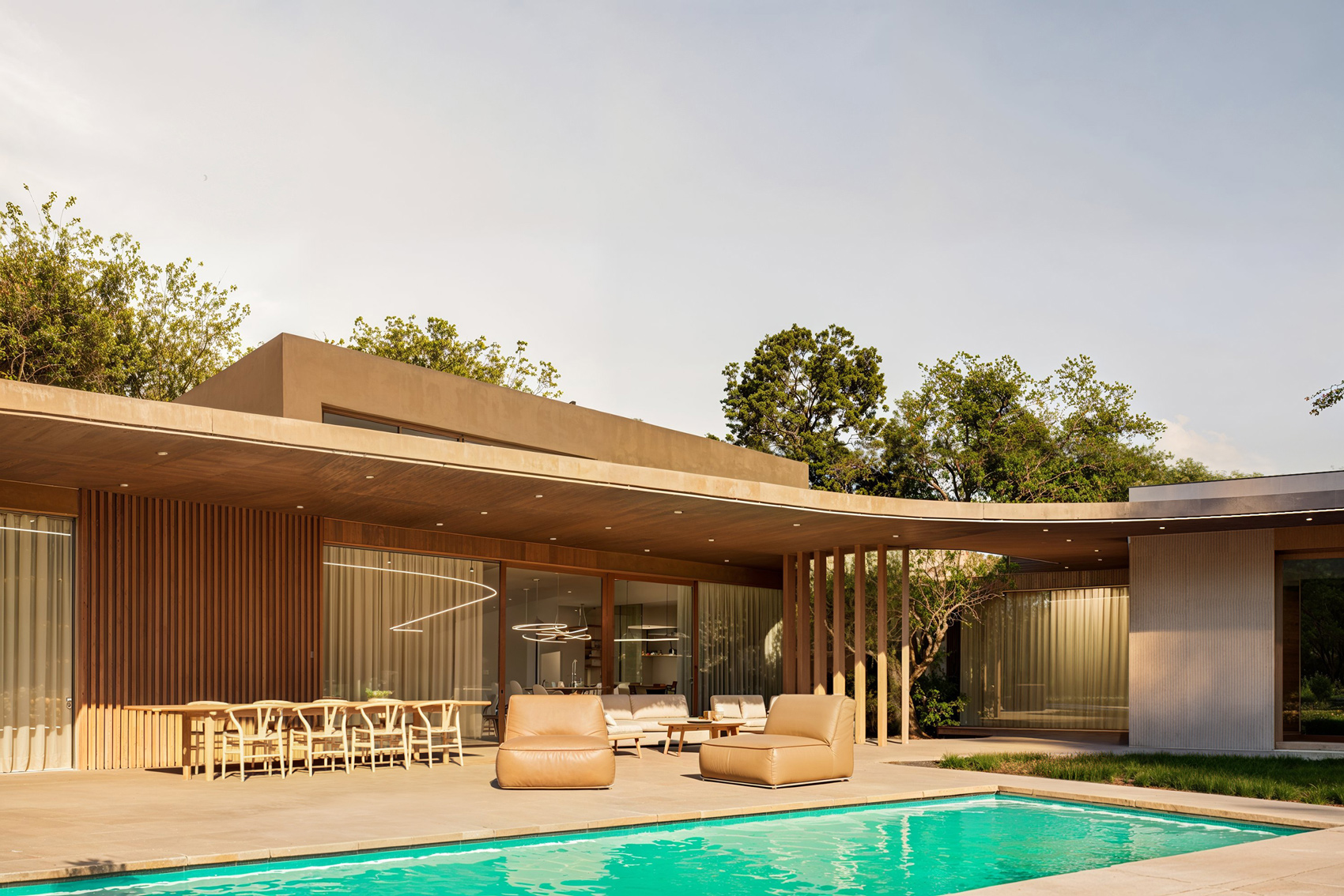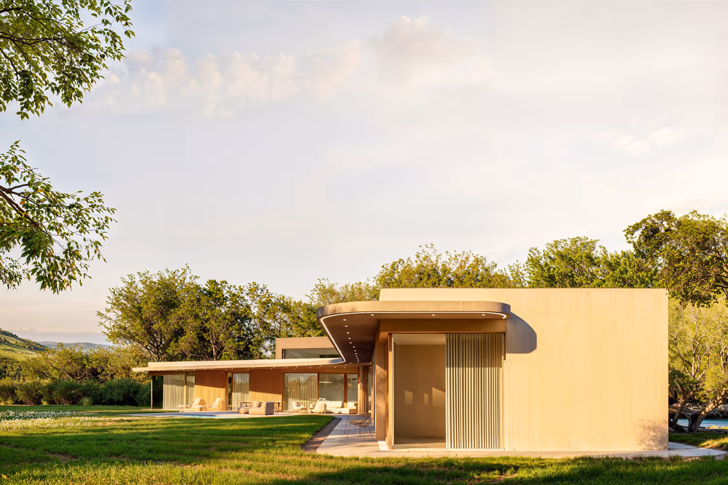 Vila pod lesem je jedinečný individuální projekt na míru, navržený s důrazem na eleganci, funkčnost a přirozené propojení s okolním prostředím. Jemně zaoblená hmota domu je precízně zasazena na rozlehlý pozemek u lesa, přičemž tvar domu ve tvaru L přirozeně reaguje na terén a otevírá se směrem k úchvatným výhledům na přírodu.