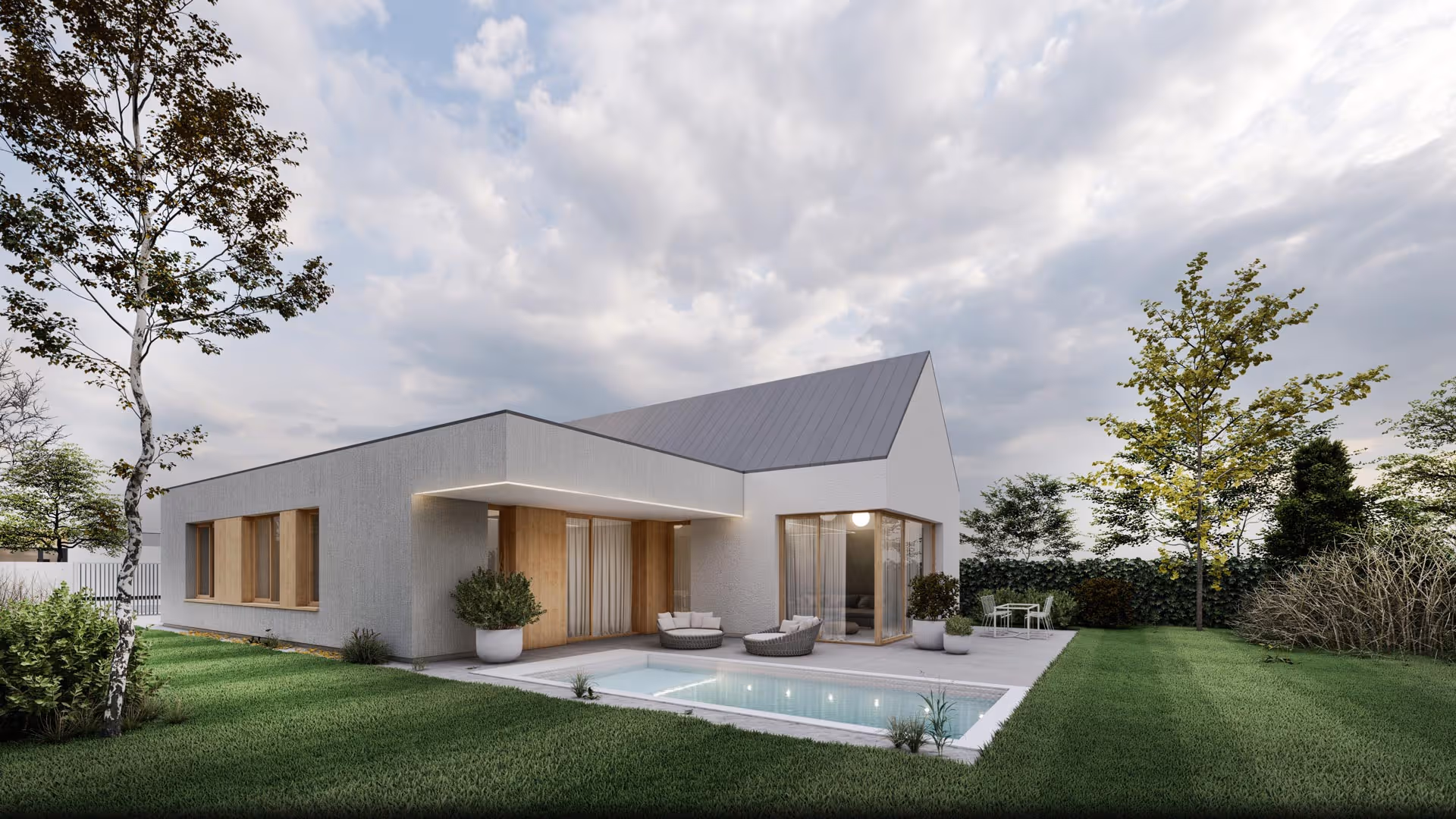 Vyvíjíme design s ohledem na funkci, styl, zápletku a rozpočet. Následuje konzultace, kde doladíme podrobnosti podle vašich připomínek. Výsledkem je závěrečná studie s půdorysy, vizualizacemi a koncepcí domu — dodávaná jako tištěná brožura.