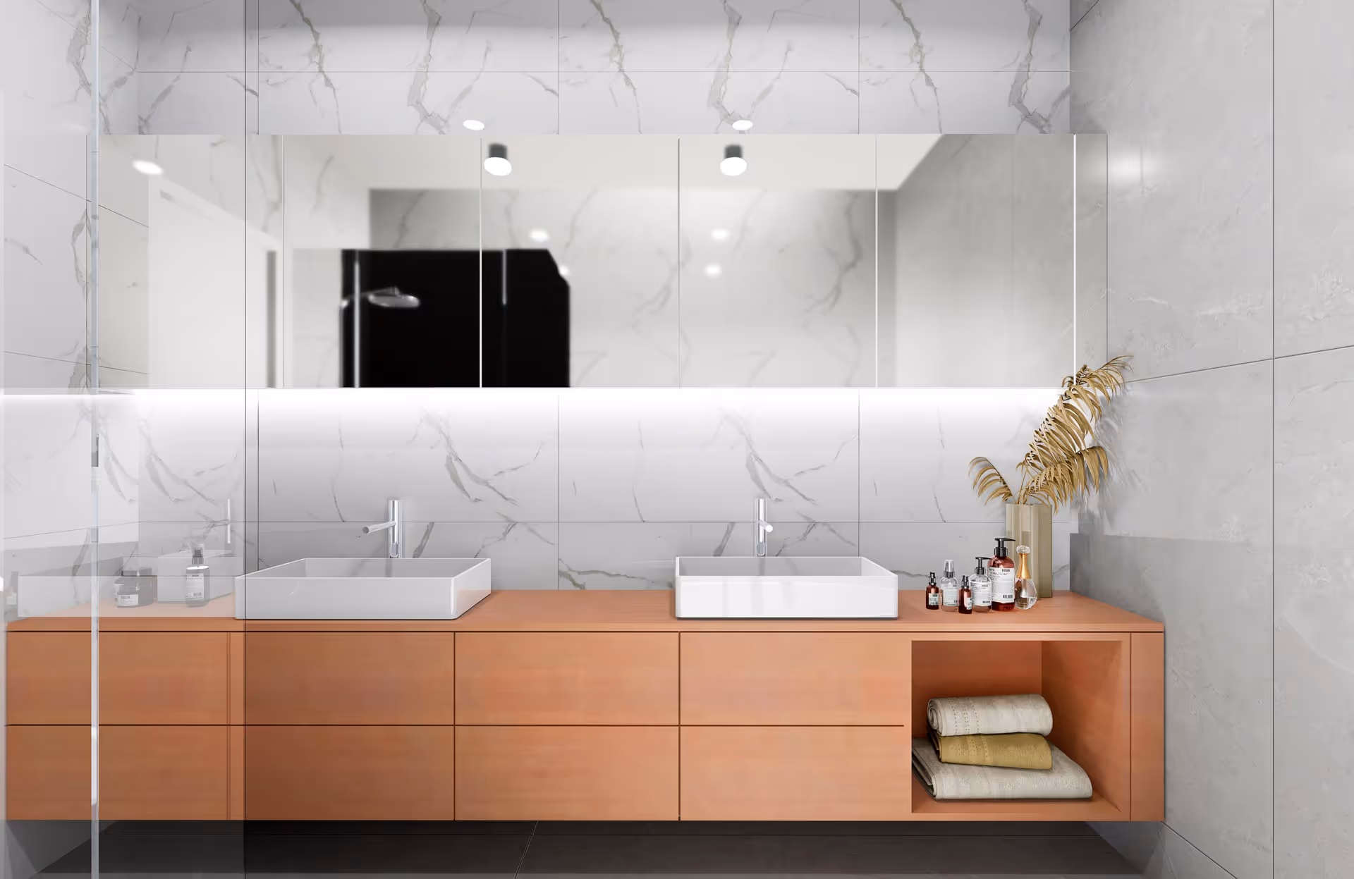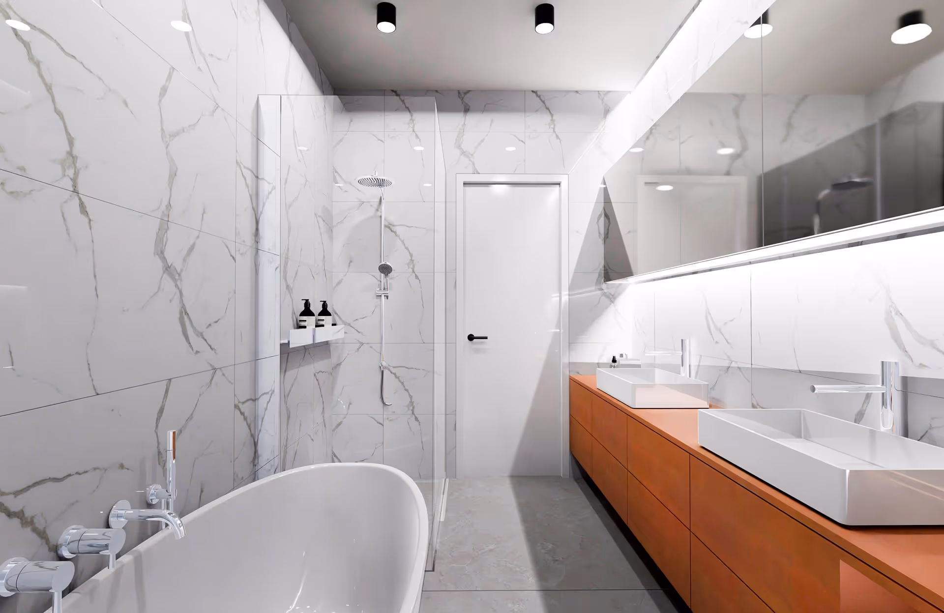 Nakonec zpracujeme předběžný rozpočet — včetně nábytku, osvětlení, podlah, dlažby a prací. Zahrneme také doporučené produkty nebo cenové úrovně.