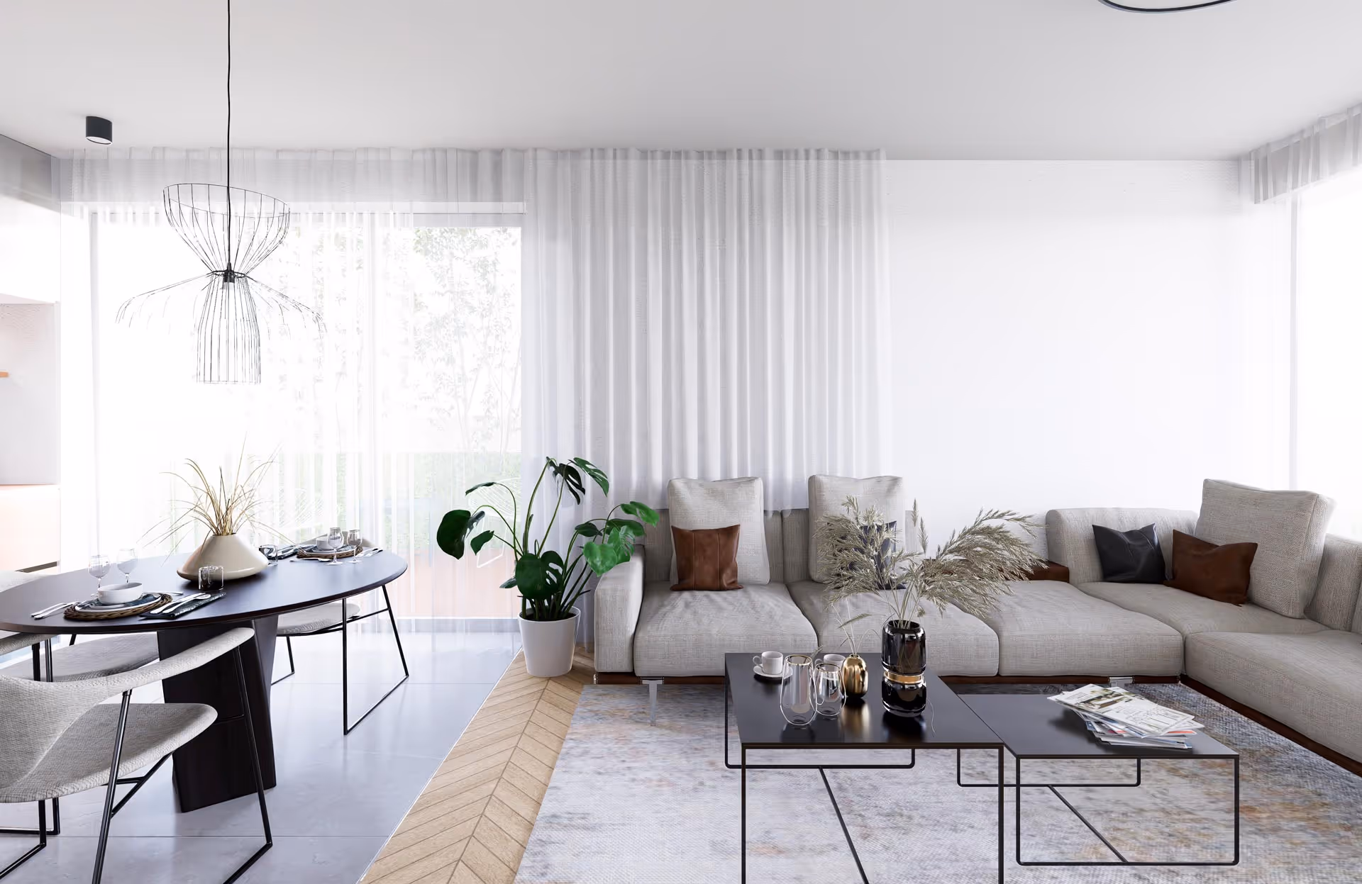 Navrhneme ideální uspořádání nábytku, funkčních zón a koncepce stylu (barevné schéma, materiály, náladové desky).