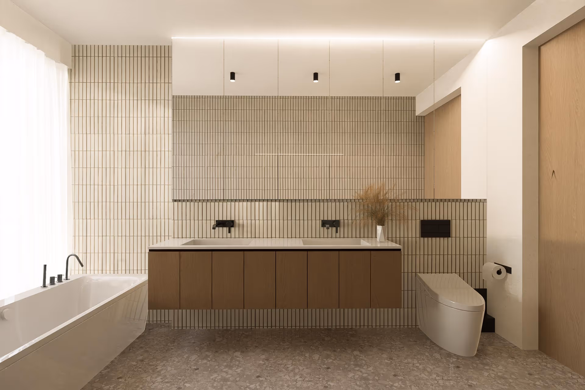 Nakonec zpracujeme předběžný rozpočet — včetně nábytku, osvětlení, podlah, dlažby a prací. Zahrneme také doporučené produkty nebo cenové úrovně.