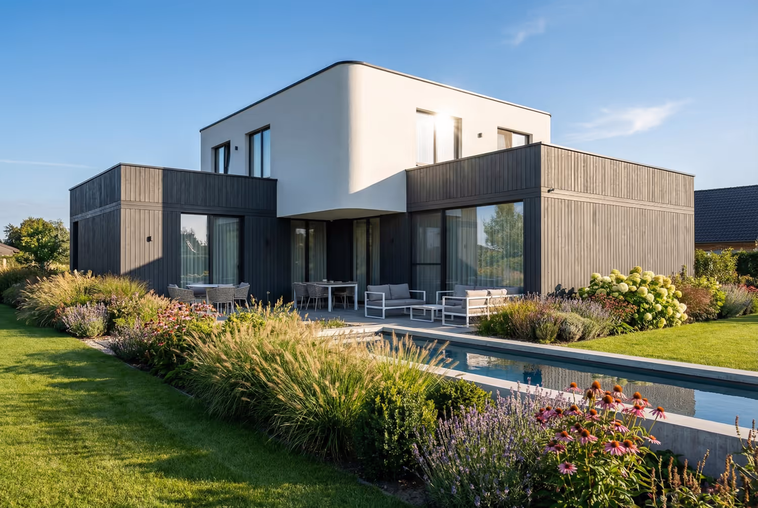 Vypracujeme návrh s ohľadom na funkciu, štýl, pozemok a rozpočet. Nasleduje konzultácia, kde doladíme detaily podľa vašich pripomienok. Výsledkom je finálna štúdia s pôdorysmi, vizualizáciami a konceptom domu — dodaná ako tlačená brožúra.