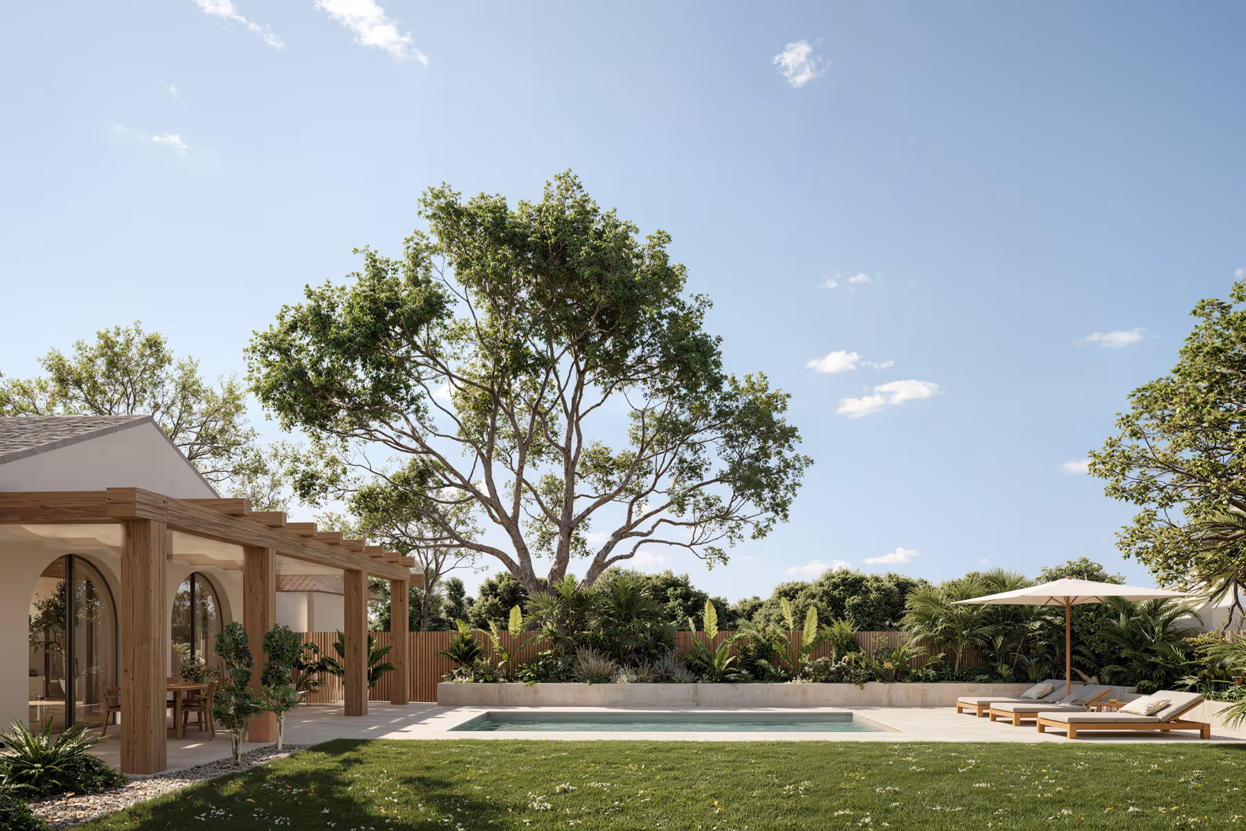 Rozľahlá terasa vytvára komfortnú spojnicu až k bazénu a poskytuje ideálne miesto pre relax, súkromné chvíle aj rodinné stretnutia v príjemnej a harmonickej atmosfére.