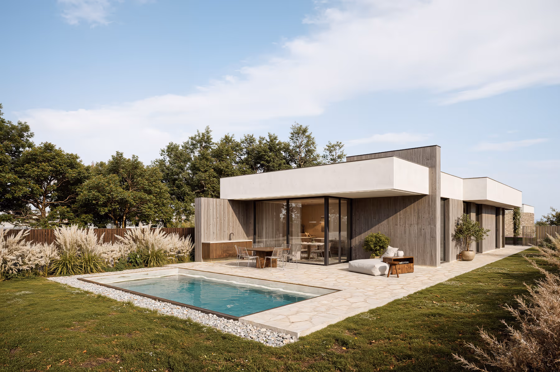 Vypracujeme návrh s ohľadom na funkciu, štýl, pozemok a rozpočet. Nasleduje konzultácia, kde doladíme detaily podľa vašich pripomienok. Výsledkom je finálna štúdia s pôdorysmi, vizualizáciami a konceptom domu — dodaná ako tlačená brožúra.