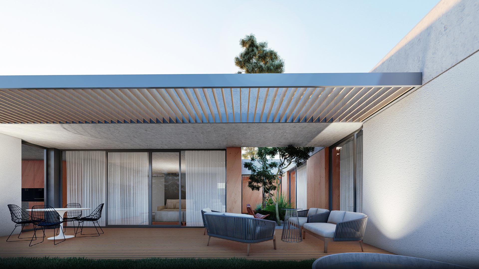 V strede dispozície je navrhnuté átrium, ktoré prináša do interiéru atmosféru absolútne súkromného exteriéru. Nachádza sa tu veľa zelene a pár stromov.