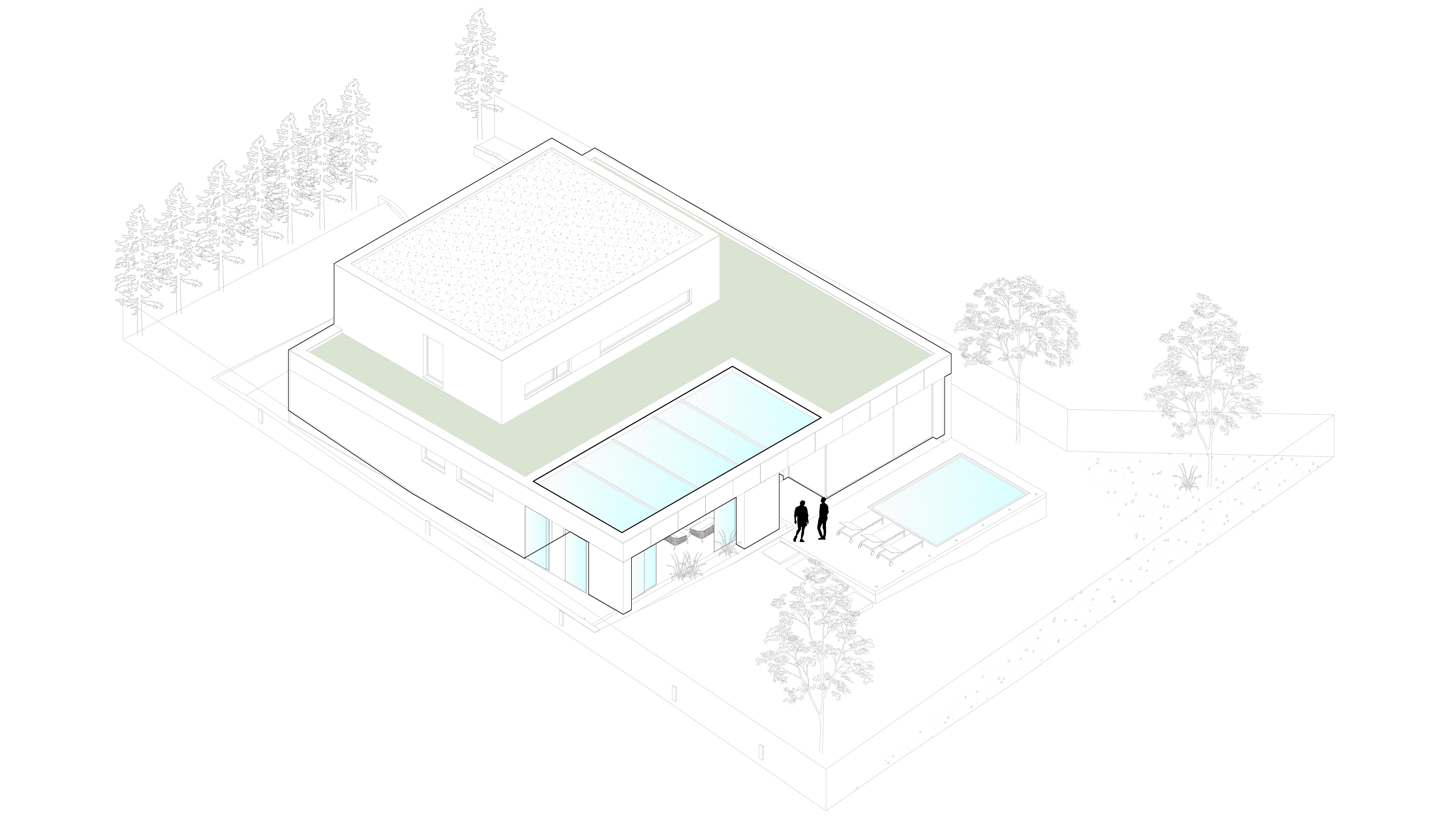 Rodinný dom sa nachádza v krásnom prostredí Záhorských sadov. Terén je svahovitý čo sa odráža aj na členení domu. Exteriér je plne prepojený s interiérom a delený na niekoľko terás s rôznymi atmosférami.